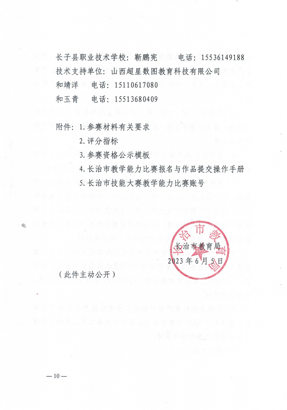 长治市教育局关于举办2023年长治市中等职业学校技能大赛教学能力比赛的通知 来源: 发布时间:2023-06-05 09:34:59 浏览次数: 次 【字体:小 大】 终审:职中超管 分享到: 【打印正文】